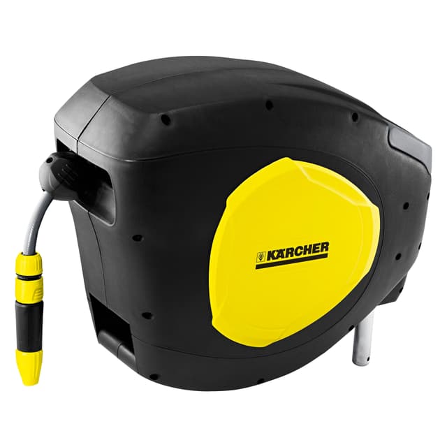 Med denne slangetrommelen fra Kärcher kan du vanne hele hagen uten at slangen floker seg.