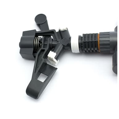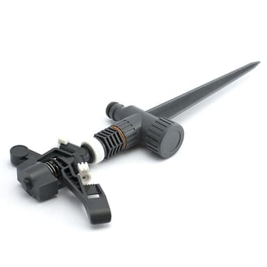 Pulserende sprinkler, laget av høykvalitets plast med in-line pigg. Spike er utstyrt med hurtigkoblingsadapter. Det er mulig å lage in-line tilkobling med andre sprinklere. Sprinkelareal 17m