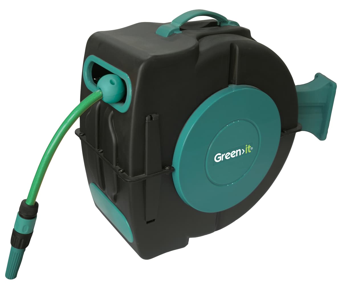 Slangeboks med automatisk opprulling og 20 m PVC-slange, samt spyledyse og monteringsbeslag til mur Trykk: 150 Psi Kobling: 12" Slange: 1/2" x 20 m Trommelmateriale PPLes mer om produktet