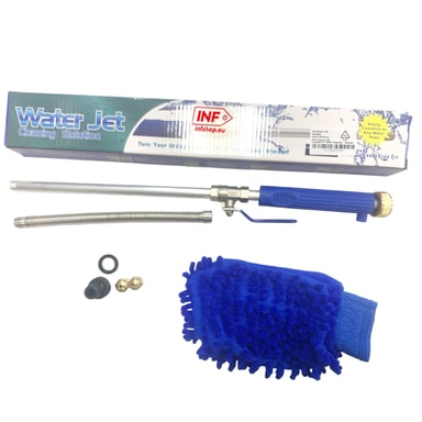 Enkelt og effektivt: Settet inneholder alle nødvendige komponenter for umiddelbar bruk. Den svarte koblingen sørger for en sikker tilkobling til hageslangen din, mens hanskene beskytter hendene dine under drift. Enten du vasker bilen, vanner hagen eller rengjør overflater utendørs, er denne høytrykksspyleren din beste løsning.