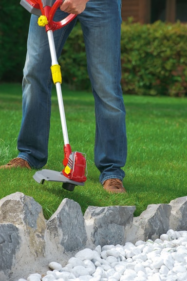 trimmeren kan justeres teleskopisk til ønsket lengde. Håndtaket kan også vikles og flyttes for å passe perfekt etter ditt ønske.