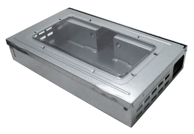 Giftkasse i metall Lokket er gjennomsiktig, slik at du kan se om giften er spist opp Mål: 26×16×4,5 cm Materiale: galvanisert stål Vekt: 540 g