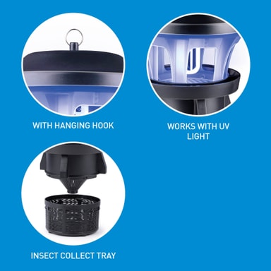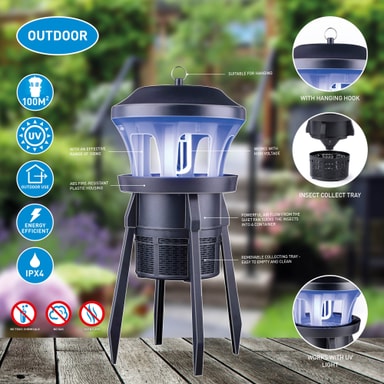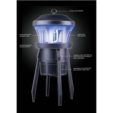 Grundig´s nya insekt-och myggfångare är för utomhusbruk och täcker en yta på cirka 100 kvadratmeter.