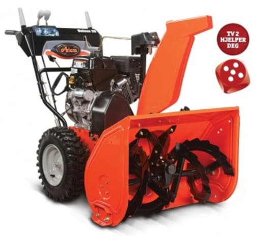 KÅRET TIL BESTE HJULMODELL AV TV2 HJELPER DEG!Designet fra grunnen med tanke på maksimal ytelse. Stor vifte på hele 35,5 cm utnytter freserhusets fulle kapasitet.UTKASTERTUT I STÅLSpesialdesignet ståltut kaster snøen opptil 15,2 meter - med meget god presisjon. Stålutkasteren tåler alt som går gjennom den - våt snø, isbiter og stein - ting som ville rive opp en utkastertut i plast.DOBLE REMMERDu får lavere vedlikeholdsutgifter og lengre levetid på remmene.UTKASTERVIFTE35,5 cm frostsikker høyhastighets vifte og 35,5 cm tanna stål innmaterskrue med smørepunkter frakter snøen inn og ut i høy hastighet. Dette gjør atsnøfreseren måker 30% mer snø 100% av tiden.HJULDrivverk med differensial og automatisk sperrefunksjon gir et høyere dreiemoment på hjulene, dette sikrer maksimal trekkraft under alle forhold.AUTO-TURN ER EN SUKSESSManøvrering av snøfreseren blir enklere med den nye, revolusjonerende styrefunksjonenAuto-Turn. Du får maksimal kontroll, presise vendinger og jevn drift. Snøfreseren vil vende med størst mulig trekkraft når og hvor du vil. Auto-Turn er nettopp det - AUTOMATISK.Modell nr.921324MotorAriens AX291Ytelse291 ccFresertypeTo-trinnStartEL 240 V / SnorstartFreserhus bredde71 cmFreserhus høyde53 cmKastelengde0,9-15,2 mGir6 framover, 2 bakoverDreibar utkastertut205°Betjening utkastertut2,5 x Ice DrillMateriale utkastertutStålBetjening klaffFjernkontrollDekkdimensjon16" x 4,8" (41x12 cm)Aksel typeAuto-TurnTankvolum drivstoff3,6 literDrivsystemDisc-O-Matic, friksjonshjulSnekketypeStøpejernGaranti girboks5 årUtkastervifte type35,6 cm 3 bladInnmaterskrue type35,6 cm tannaSliteskoVendbareVekt112 kgGaranti3 års begrenset garanti ved privat bruk. 90 dager garanti ved profesjonelt bruk.Halogen lysStandardVarme i håndtakStandardSnøskjærereEkstrautstyr