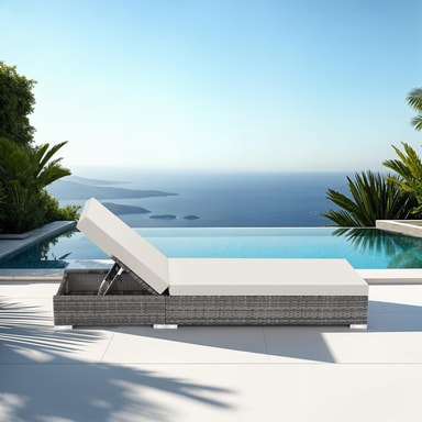 Dette vakre møbelsettet er perfekt for å slappe av i sommer, og solstolene kan brukes i ethvert hjem, hage eller terrasse for å slappe av. Settet består av to solsenger med matchende sidebord, pluss tilbehør. Det vakre kubeformede bordet har en mørkfarget glassoverflate og lar deg lagre ting som håndklær eller solkrem inni. I tillegg vil aluminiumsrammen og høykvalitets polyrottingflettverket, inkludert beskyttelsestrekket, sikre lang levetid utendørs. Både beige og grå putetrekk er inkludert hvis du ønsker å endre utseendet. Funksjonelt kan ryggstøtten på hver solseng justeres til fem posisjoner, avhengig av om du ønsker en mer stolaktig eller horisontal posisjon. Det klassiske settet med solsenger og puter fra tectake er perfekt til hjemmet ditt.