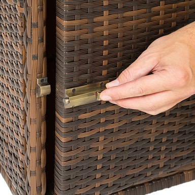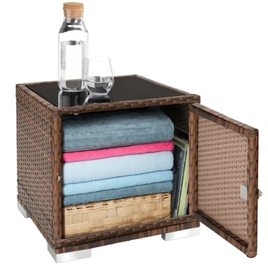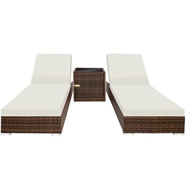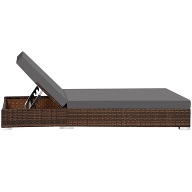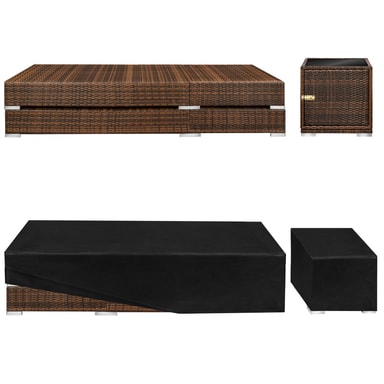Dette vakre møbelsettet er perfekt for å slappe av i sommer, og solstolene kan brukes i ethvert hjem, hage eller terrasse for å slappe av. Settet består av to solsenger med matchende sidebord, pluss tilbehør. Det vakre kubeformede bordet har en mørkfarget glassoverflate og lar deg lagre ting som håndklær eller solkrem inni. I tillegg vil aluminiumsrammen og høykvalitets polyrottingflettverket, inkludert beskyttelsestrekket, sikre lang levetid utendørs. Både beige og grå putetrekk er inkludert hvis du ønsker å endre utseendet. Funksjonelt kan ryggstøtten på hver solseng justeres til fem posisjoner, avhengig av om du ønsker en mer stolaktig eller horisontal posisjon. Det klassiske settet med solsenger og puter fra tectake er perfekt til hjemmet ditt.