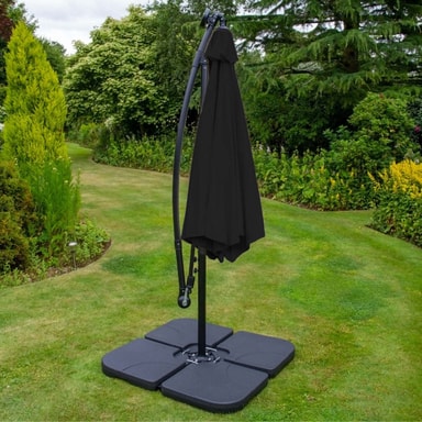 • 3m Cantilever Parasoll med LED-lys og firkantet sokkel - Svart