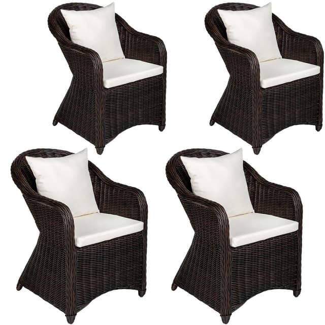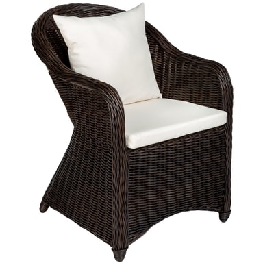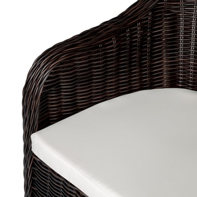 Disse stilige utendørs kurvarmstolene i kunstrotting blir et blikkfang i hagen, på terrassen eller på balkongen. Gjennom sin ramme i værbestandig aluminium er stolen ekstra lett. Den rundete kunstrottingen med sine imiterte fargeskift viser ingen visuelle forskjeller mot en naturlig vev. Den myke sitteputen er behagelig og vannavstøtende.
