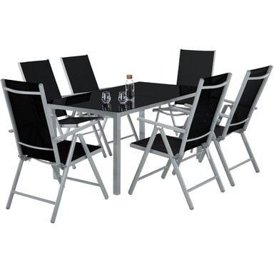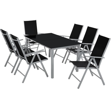 Med denne aluminium-sittegruppen gjør du et utmerket valg. Tidløs design og mange bekvemme funksjoner - utmerket for fine stunder utendørs. Et bord av høy kvalitet med pulvermalt aluminiumstilling og sikkerhetsglasskive garanterer lang levetid.Les mer om produktet