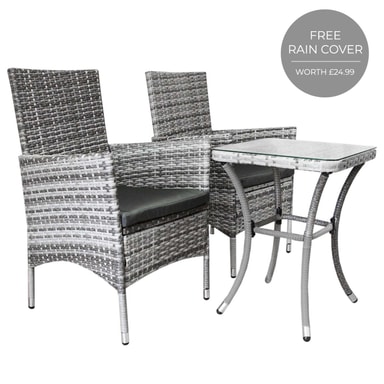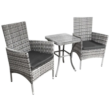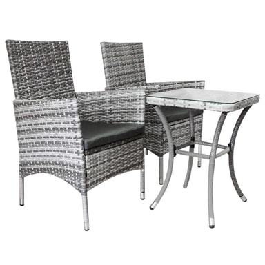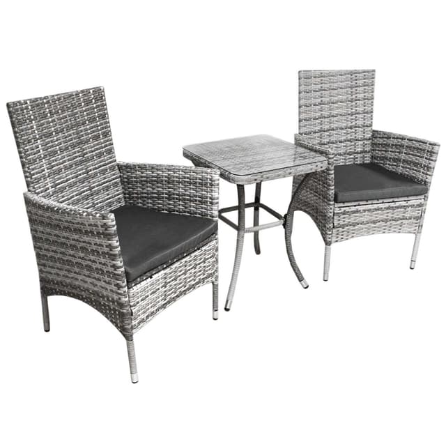 Bistrosett Rattan 3 deler Utendørs Hagestol Bord Uteplass Spisestue Balkong Lys gråLes mer om produktet
