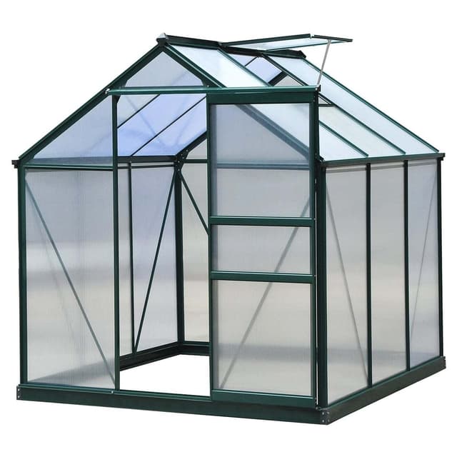 • Drivhus med polykarbonatbase og 10 W Free Clips hageskur type 1,8 m x 1,8 m