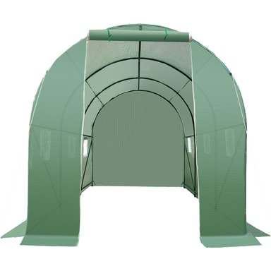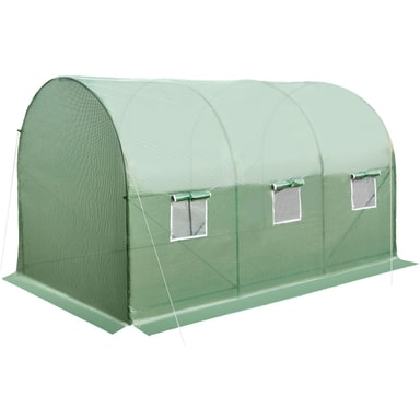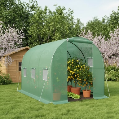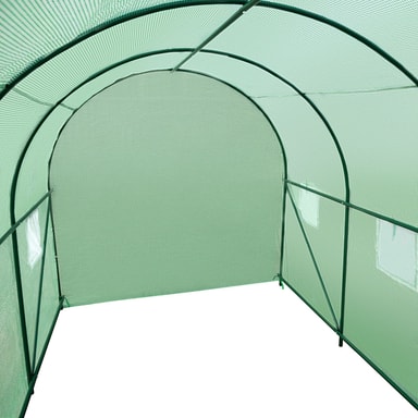 Vil du la plantene og blomstene dine gro beskyttet og uavhengig av vær? Dette plastveksthuset gir mye overflate og et sørlig simulert klima, for kultivering av ulike typer grønnsaker, urter og frukt - og blomster. Plantene dine beskyttes mot ekstrem solinnstråling og dyreskader. Den frostsikre PE-gitterplasten og den stabile pulvermalt metallrammen gjør plastveksthuset perfekt for din dyrking. Praktisk: Veksthuset har en dør og seks vindu. Plastveksthuset bygger du opp i hagen på null komma niks! Klikk hjem plastveksthuset tunnel.