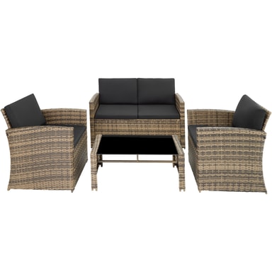 Med dette koselige sittesettet i rotting fra tectake er komfort prioritet. De ekstra myke putene inviterer deg til å drømme dagen bort. det vakre utseendet gjør at den passer perfekt i hagen din eller på terassen. Den stabile stålrammen sørger for at dette slitesterke settet har høy lastekapasitet. Et fint flettet mønster gir dette settet et sofistikert, men likevel subtilt utseende. Deilig avslapning: denne koselige sittegruppen i rotting fra tectake kombinerer tidløs design med høye nivåer av sittekomfort.