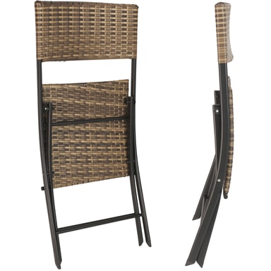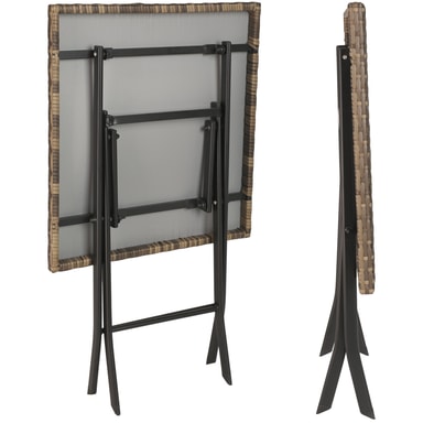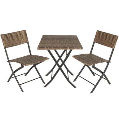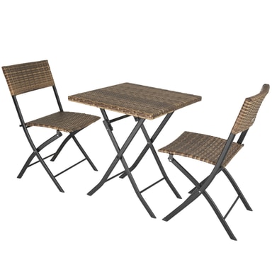 Dette tredelte hagemøbelsettet i rotting fra tectake vil garantert imponere med sitt elegante utseende, fleksibilitet og komfort. De to stolene og bordet er perfekt for å nyte en utendørs matopplevelse i solen med en du er glad i. Det kompakte sittesettet er ideelt for et hjem med uteplass eller balkong. Når de ikke er i bruk, kan de enkelte elementene enkelt foldes sammen for oppbevaring. Bordet og begge stolene er laget av pulverlakkert stål, mens de finvevde elementene er laget av slitesterk polyrotting og leveres ferdigmontert. Kombinasjonen av robust ramme og lett design gjør dette rottingsettet med lite vedlikehold perfekt for transport og camping. Nyt et romantisk måltid ute i naturen med dette hagemøbelsettet i rotting fra tectake.
