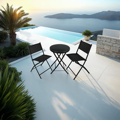 Skap et lunt og koselig sted i en håndvending med det funksjonelle hagesettet fra tectake. De ekstremt slitesterke tekstilfibrene slipper luft igjennom og sørger dermed for en behagelig og avkjølt sittefølelse selv når været er varmt. Den enestående egenskapen til sittetilbehøret er fleksibiliteten: Monteringen og demonteringen gjør man med noen få, enkle grep. Den lave vekten og klappefunksjonen gjør møbelgruppen ideelt egnet for transport og plassbesparende oppbevaring. Den solide stålrammen gjør samtidig sittegruppen svært stødig. Balkongsett et fra tectake er lett å bruke: Slå opp, ta plass og nyt livet.