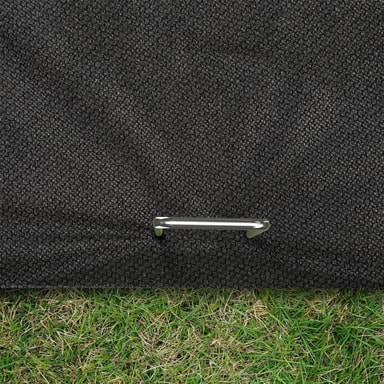 For å feste geotekstiler og andre materialer til bakken utendørs som: Eks.: hagefleece, jordstoff, beskyttelsestrekk for planter for å beskytte mot frost, nett, kunstgress, kabler, slanger, telt og presenninger. Takket være de skrå endene kan tappene enkelt drives gjennom tekstiler og festes i bakken. Takket være det solide materialet kan du bruke monteringspinnene flere ganger. Du vil motta en boks med 100 x jordankre.
