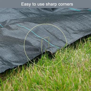 Passer til slanger, kabler, rister, ugressfleece, jordvev og andre geotekstiler som du ønsker å feste til bakken i hagen din.