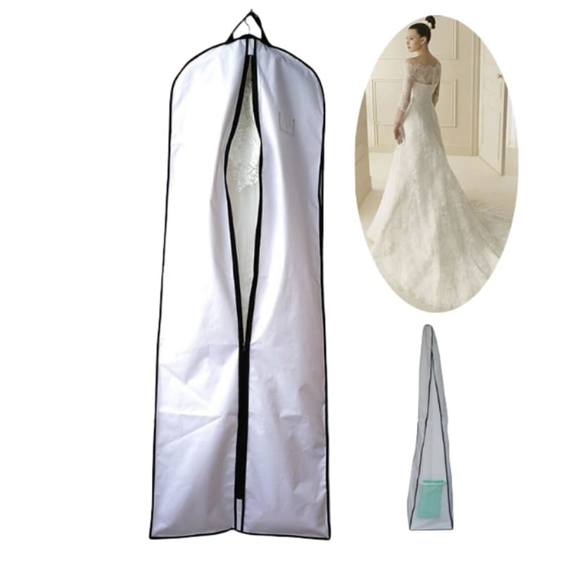 Omfattende beskyttelse: Denne klesvesken gir pålitelig beskyttelse mot støv, smuss, insekter og andre potensielle farer, og holder brudekjolen din plettfri og klar for din spesielle dag eller fremtidige feiringer.