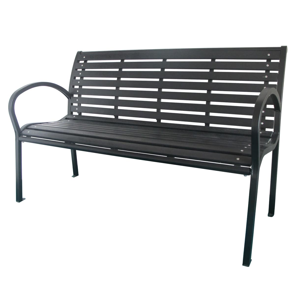 Dimensjoner: 125x60x80 cm Materialer: Plastlister og stålramme Farge: Svart Vekt: 13 kg Rammetype: Pulverlakkert stål Rygglene: Plastlister med trelignende utseende