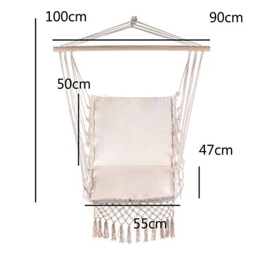 Unn deg selv avslapning og komfort med denne koselige hengestolen i nordisk stil, perfekt for lesing eller avslapning både innendørs og utendørs. Laget med myke materialer og sterke tau, håndterer denne hengestolen lett en vekt på opptil 150 kg. Dens minimalistiske design gjør den til et stilig tillegg i ethvert moderne hjem.