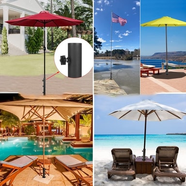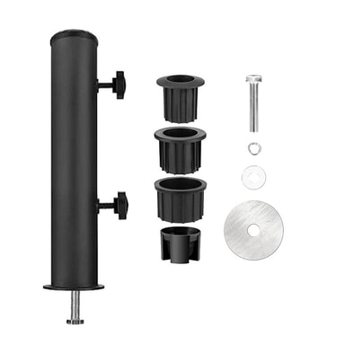 Den medfølgende settet inneholder tre forskjellige størrelser av plastikkhylser (48mm, 38mm, 32mm + skrå hylse), som gir fleksibilitet til å tilpasse holderen til forskjellige parasollstangdiametre. Dette sikrer en tett og sikker passform, og reduserer risikoen for at parasollen beveger seg eller velter i vinden. Den rustfrie stål sekskantbolten og sklisikre skiver gir ekstra stabilitet og sikkerhet. Den svarte fargen på holderen gir et elegant og moderne utseende som passer godt inn i de fleste utendørsmiljøer. Dette settet er ikke bare funksjonelt, men også estetisk tiltalende, og vil forbedre utseendet på uteområdet ditt.