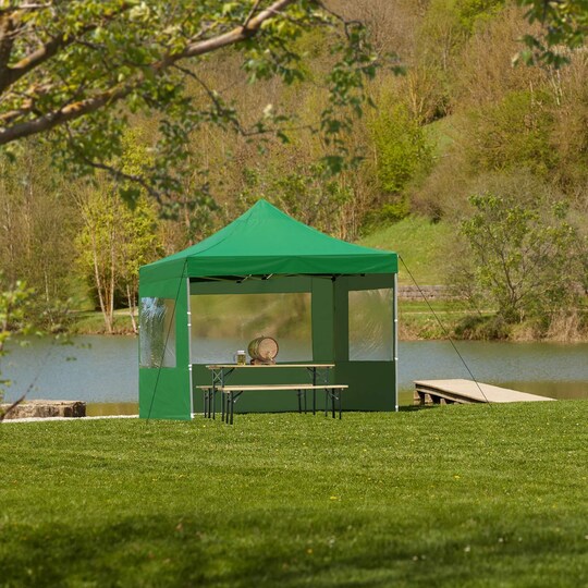 Den bærbare paviljongen fra tectake tilbyr masse plass med liten vekt. Med noen få grep er det lette partyteltet klar til bruk på grunn av det enkle klikksystemet. Taket og veggene festes på de robuste stengene ved hjelp av kroker og borrelås. Høyden på den rustfaste og vanntette paviljongen kan varieres etter behov . Hagepaviljongen kan pakkes kompakt vekk i den medfølgende vesken, for enkel transport eller plassbesparende oppbevaring. Enkelt å sette opp. Lett å transportere. Praktisk oppbevaring: Den fleksible paviljongen fra tectake.