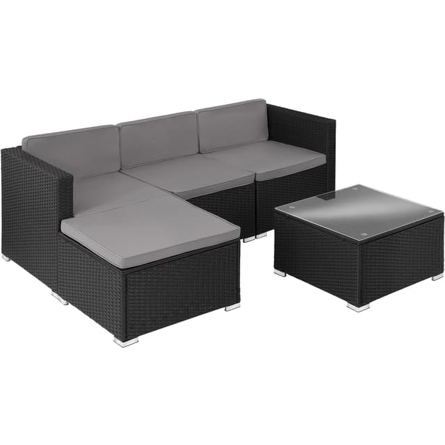 Bring komfort til terrassen, balkongen eller hagen din med den koselige rotting solsengen Lignano fra tectake. Den sjenerøse setedybden og de komfortable putene skaper en atmosfære som inviterer deg til å slappe godt av. Hvert element i det moderne settet kan kombineres fleksibelt med hverandre og kobles sikkert sammen med de praktiske festeklipsene. Det lave bordet med solid topp laget av herdet sikkerhetsglass tilbyr et praktisk sted å oppbevare forfriskninger og snacks - gjenoppdag sommeren med dette allsidige ensemblet fra tectake.