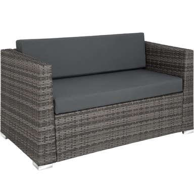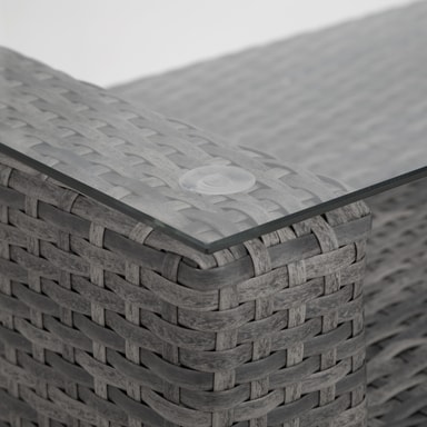 Bord, sofa og armstol er tilvirket i aluminium og kledt med kunstrotting. Dermed får de en lav vekt uten at det går ut over stabiliteten. Bordoverflaten av glass gir et ytterst elegant inntrykk og er svært enkel å rengjøre. De bekvemme beige sittedynene i polyester er godt fargekoordinerte med de svarte møblene og utstyrt med hurtiglås på baksiden, slik at dynene er lette å rengjøre. For å beskytte dynene mot gjennomfuktning er overflaten impregnert. Slik renner smuss og vanndråper enkelt av (se bilde).