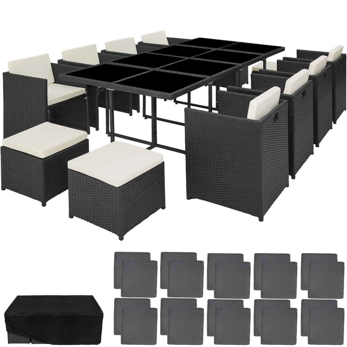 Med denne innbydende sittegruppen i rotting fra tectake stiller du godt. Ensemblet tilbyr med sin puristiske og kantede design rikelig med plass og forener hygge med selskapelig samvær.Les mer om produktet
