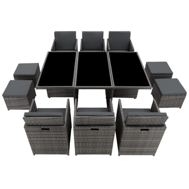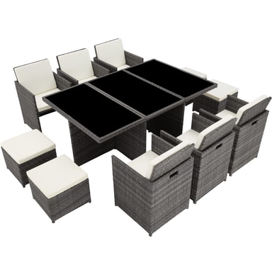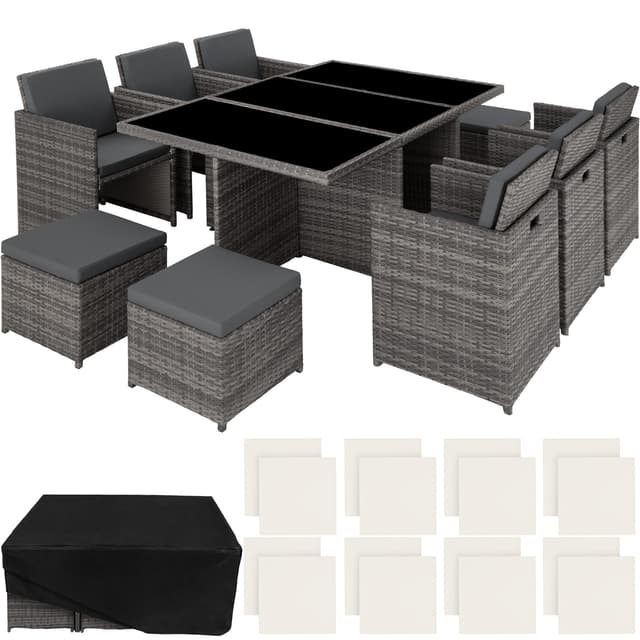 Passer både i hagen og innendørs. Våre sittemøbler i kunstrotting kan brukes fleksibelt og gir hagen, terrassen, uterommet eller stuen et løft. Behagelige stoler og det elegante bordet innbyr til koselige stunder. Møblementet utmerker seg, ikke bare gjennom sin attraktive design, men også gjennom sin lange levetid. Den lave vekten gjør møblene lette å transportere. Bordoverflaten med 3 glasseksjoner er svært elegant og ekstremt lett å rengjøre. De bekvemme beige sitteputene i polyester er godt fargekombinerte med rottingmøblene og på baksiden har de hurtiglås, for enkel rengjøring av dynene. For å beskytte dynene mot gjennomfuktning er overflaten impregnert. Slik renner smuss og vanndråper enkelt av.