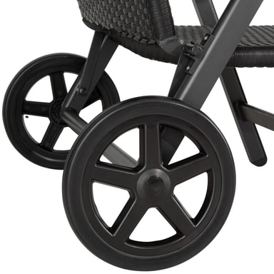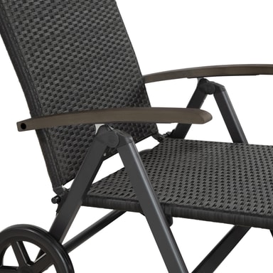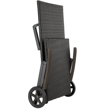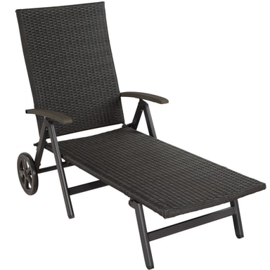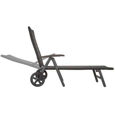 Utmerket solseng med hjul for din velværeoase og for soldyrkere! Både i hagen og på terrassen er den et blikkfang, også i vinterhagen. Elegant design med enkle former og innovativ materialkombinasjon gir solstolen et perfekt utseende. Hjulene ved hodeenden gjør sengen lett å transportere. Ryggstøtten har fem ulike høydeposisjonen og kan tilpasses etter hvordan solen står. Den stabile aluminiuminnstillingen og den lettstelte flettede kunstrottingen passer like bra både for innendørs- og utendørsbruk. Unn den å kunne slappe av i denne vakre solsengen med hjul.