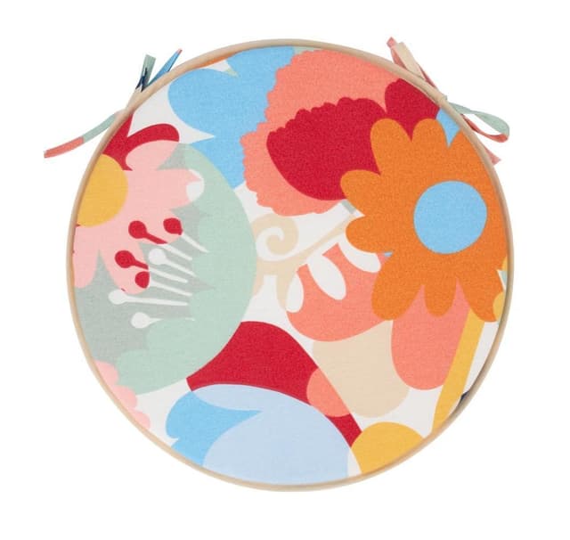 Pute til stol NORDIC FLOWER D38x2,5cm. Diameter 38cm, tykkelse 2,5cm.Les mer om produktet