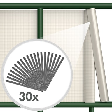 Denne mangesidige og høykvalitative innsynsbeskyttelsesfolien har mange finesser å tilby. Uansett om den anvendes som beskyttelse mot sol, vind og vær, som innsynsbeskyttelse eller som støybeskyttelse. Passer alle vanlige enkel- og dobbelhagegjerder. Folien er barnslig enkel å feste i en håndvending. Ved behov kan folien enkelt rengjøres med en hageslange. Våre innsynsbeskyttelsesremser har dobbelsidig trykk, er UV-bestandige og lavreflekterende. Et dobbelsidig overflatesjikt forhindrer blekning av fargen. Tre enkelt og greit folien gjennom strengene på gjerdet og fikser den i endene med de medfølgende festeklemmene.