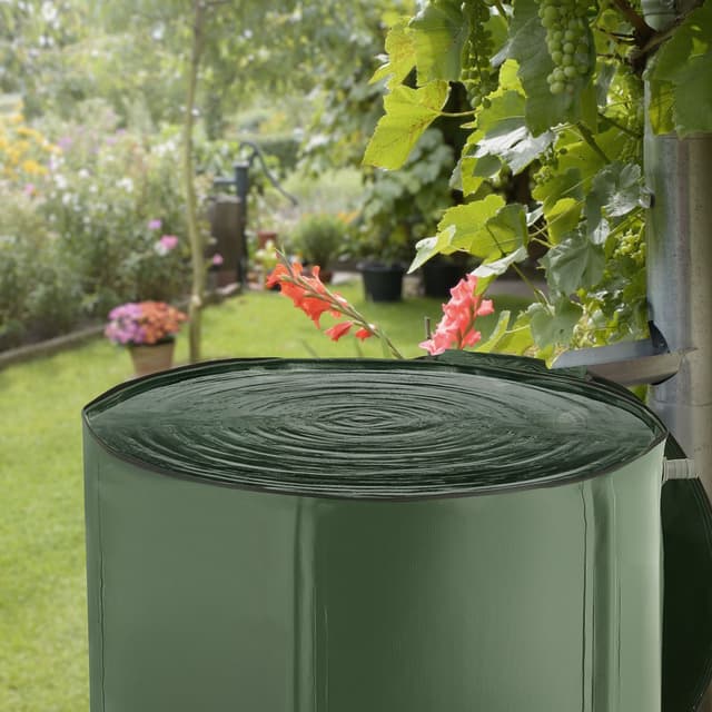 Den allsidige anvendelige regnvannstønnen fra tectake samler verdifullt vann til hagen din helt gratis. Takket være den enkle foldemekanismen kan den lette regnvannstønnen raskt og enkelt settes opp og tas ned og oppbevares uten større plassbehov. Gitteret på toppen av regnvannstønnen beskytter innholdet mot blader, smuss og insekter. Stengene og presenningen av robust polyklorid sikrer regnvannstønnens nødvendige stabilitet og gir tønnen stor motstandskraften mot påvirkninger utefra.