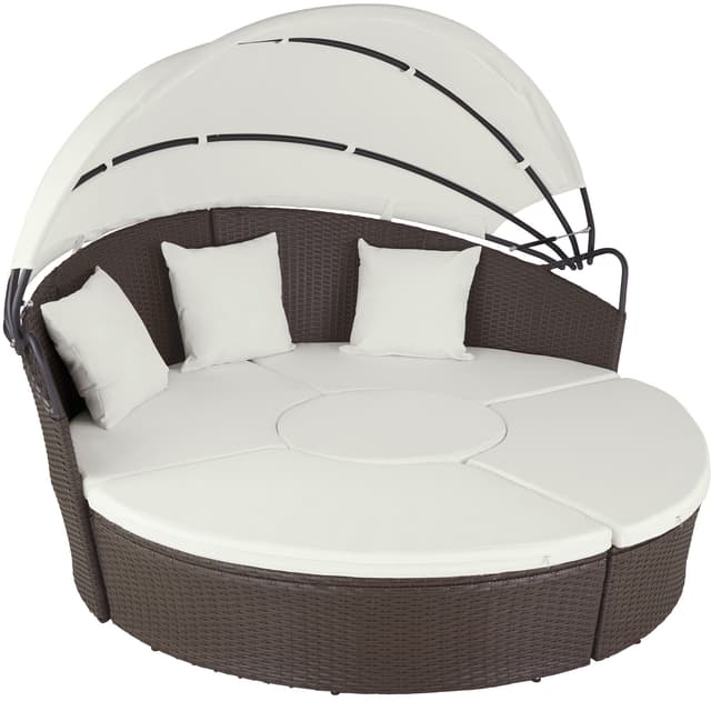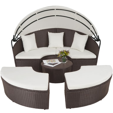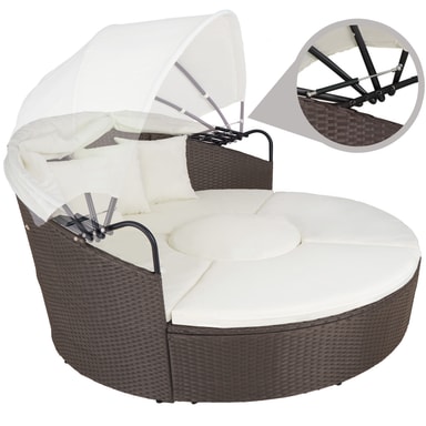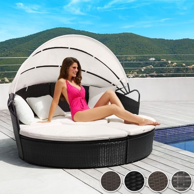 Med denne soløyen i aluminium og poly rotting forvandler du hagen, terrassen, vinterhagen, balkongen eller hjemmespaet til en herlig oase. Solfylte dager gir det uttakbare solbeskyttelsestaket praktisk skygge og beskytter mot vind. Du kan bruke den som praktisk sofagruppe med plass for venner eller som en behagelig dagseng. Du kan lett modifisere soløyen av rotting slik at den passer dine behov - et must i ditt eget hjemmespa.