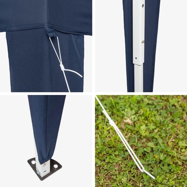 Spontan fest i hagen, en solbeskyttelse når man behøver det eller den optimale festivalledsageren. Denne praktiske oppsettbare paviljongen passer for hagen og for camping. Den kan ved hjelp av de vikbare stagene bygges opp i en håndvending og står stabilt. Ved hjelp av de medfølgende teltpinnene kan paviljongen sikkert forankres i marken.