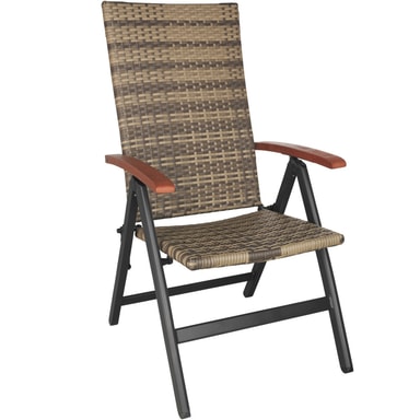 Den som leter etter en hagestol av høy kvalitet å slappe av i, treffer fort rett her. Materialene i vår sammenleggbare hagestol er ytterst stabilene, har lang levetid og sittekomforten er utmerket. Den legges sammen i en håndvending og får plass overalt. Ryggstøtten kan stilles i fem ulike posisjoner for å muliggjøre mange behagelige sittemuligheter. Kunstrotting-utseendet er elegant og dessuten svært lett å rengjøre. Den robuste aluminiumsrammen gir stabilitet og de gode armstøttene av tre avrunder det herlige designet på en perfekt måte. Denne vakre hagestolen passer perfekt til uteplassen din.