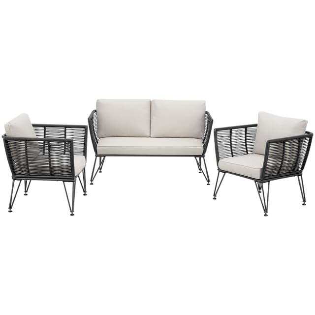 Med sitt sjarmerende og moderne utseende passer denne sittegruppen med to fine lenestoler og en romslig sofa perfekt i ethvert uteområde og inviterer til lange opphold.