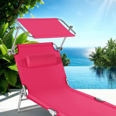 For maksimal sommerkos kombinerer denne allsidige solsengen fra tectake høy funksjonalitet med en robust design. Du er garantert maksimal avslapning takket være et ryggstø som kan justeres i 4 trinn, et fleksibelt, justerbart soltak, en myk hodepute og en behagelig liggeflate. Den pulverbelagte stålrammen med tre ben gir den lettstelte konstruksjonen ekstremt god stabilitet og beskyttelse mot tipping. Den enkle foldemekanismen, de ideelle målene for sammenlegging og det praktiske bærehåndtaket gjør den lette solsengen fra tectake ideell å ha med seg på tur.