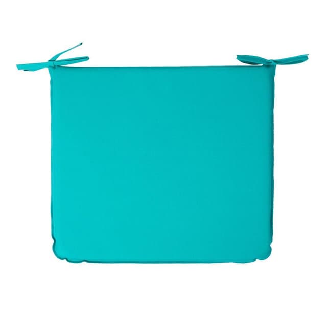 Stolunderlag OHIO vanntett, 43x38cm, tykkelse 2,5cm turkis. Materiale: stoff 100 % polyester med PVC-belegg, fylt med skum. PLEIE: når du rengjør overflaten på et skittent produkt, bruk et vaskemiddel og skyll under rennende vann.