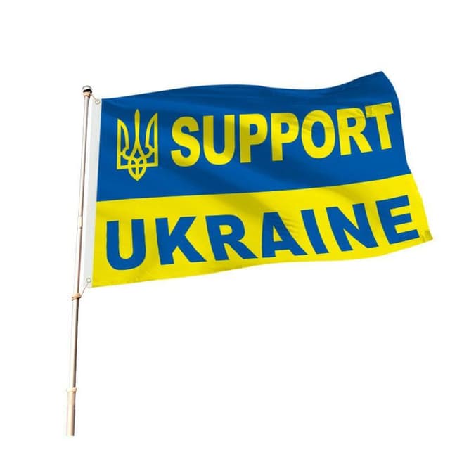 1 × ukrainsk flagg med riksvåpen og tekst ""Support Ukraine""