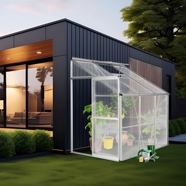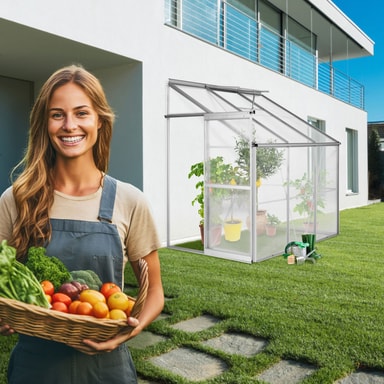 Det stabile veggdrivhuset fra tectake er perfekt å sette inntil husveggen, hagemuren eller en redskapsbod. Drivhuset av høy kvalitet består av stabile elokserte aluminiumsprofiler og varmeisolerende hulromsskiver. Det praktiske takvinduet gir en utmerket luftsirkulasjon. Drivhuset kan stilles opp mot alle typer vegger. Kjøp det praktiske veggdrivhuset fra tectake allerede i dag.