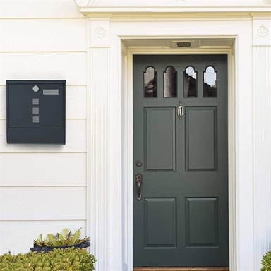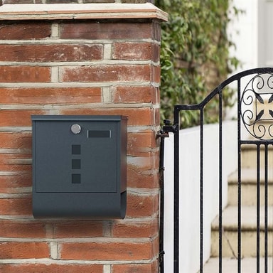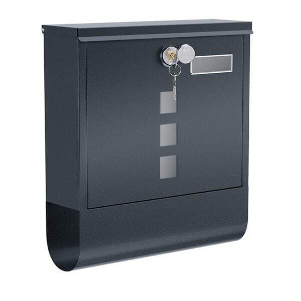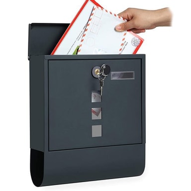Med de medfølgende skruene, ekspansjonsboltene og gummiavstandsstykkene kan denne postkassen enkelt monteres på veggen ved inngangspartiet eller verandaen. Den elegante antrasittgrå fargen passer inn i de fleste fasader og gir et stilrent inntrykk.