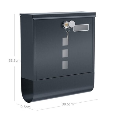 Denne veggmonterte postkassen kombinerer sikkerhet og stil med sin robuste konstruksjon og moderne design. Den er laget av pulverlakkert kvalitetsstål som tåler vær og vind, mens det smidige låsesystemet med kobberkjerne og beskyttelsesdeksel sørger for at posten din er trygg.