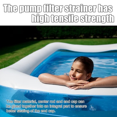 Høykvalitets vannfilter: Filterpatronens sil har gode mekaniske egenskaper og tåler ulike temperaturer og sollys godt. Pumpefiltersilen har høy strekkfasthet. Filtermaterialet, senterstangen og endestykket kan limes sammen til en integrert del for å sikre bedre tetting av endestykket.