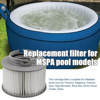 Erstatningsfilter for MSPA bassengmodeller: Dette patronfilteret er egnet for oppblåsbare bassenger som Tuscany, Mono, Camaro, Alpine, Starry, Silver Cloud, Tekapo, Aurora.