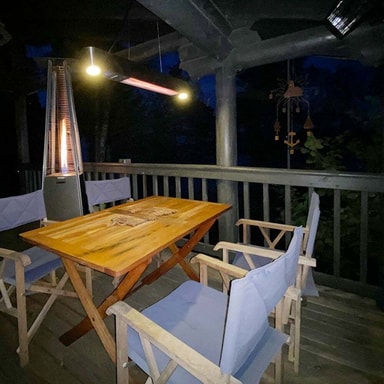 Ved å henge terrassevarmeren midt over et bord, vil alle som sitter rundt den få glede av den.