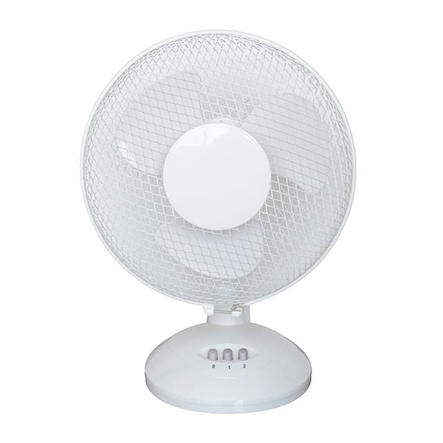 Stillegående bordvifte med rotering til sidene. Rotering kan låses til et fast sted og viften kan vinkles i høyden. 2 hastigheter. 20 watt. Str: 26 x 36 x 21 cm. Ce og rohs godkjent.