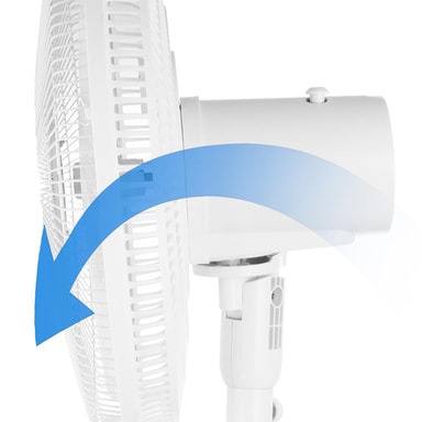 Rund base gjør den ekstra stabil på gulvet. Høydejusterbar i 3 forskjellige høyder. 126, 77 eller 55cm. Oscillerende funksjon betyr at luften spres over et større område. Metallgitter sørger for at ingen fingre kommer inn i viftebladene.