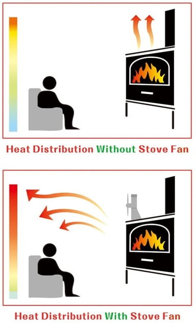 Stillegående drift: Viften lager ingen støy og varmen fordeles stille og uten strømforbruk. Du får bedre effekt av varmen fra peisen din og varme i hele rommet, samtidig som du sparer oppvarmingskostnader.